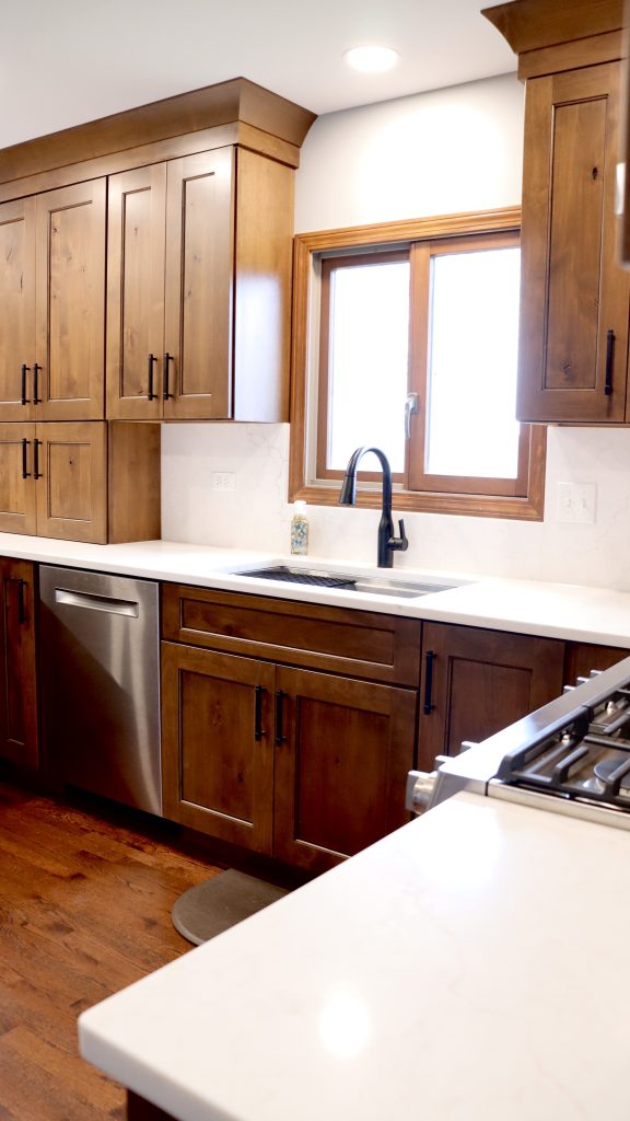 We started by removing the original 1991 cabinets and countertops, making room for a modern, functional upgrade throughout. The real wood floors were sanded and stained darker, adding warmth and elegance to the entire space.